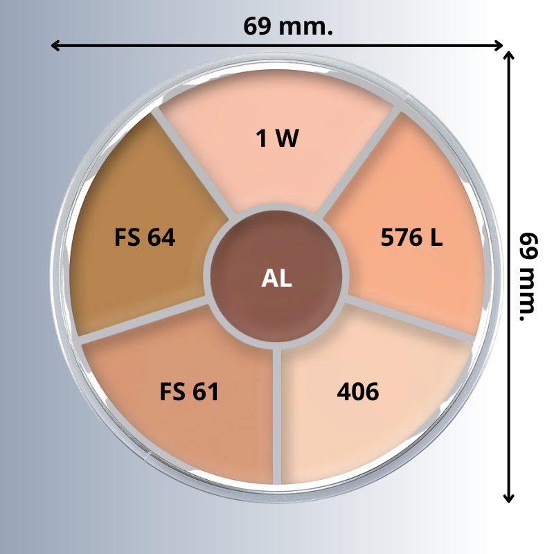 La fórmula clásica de Supracolor en un práctico envase redondo con 6 colores. Perfecto para crear varios efectos para Halloween, Cosplay, disfraces o para engañar a tus amigos. Este maquillaje a base de cera y aceite, fácil de usar, es altamente pigmentado y se difumina fácilmente, logrando efectos tanto fuertes como sutiles. Es aconsejable fijar la maquillaje con el polvo Translucent Powder Kryolan, para evitar su transferencia y aumentar la durabilidad.